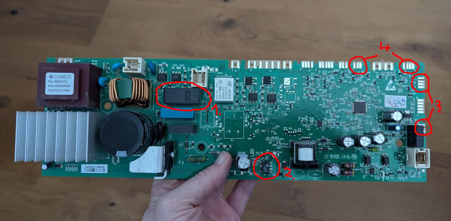 I’ve read about a quite common issue that dry solder joints on the main circuit board might be the culprit, so I disassembled the dryer to inspect the board: