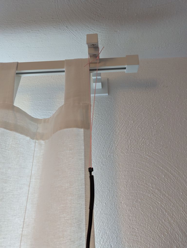 The following picture shows how easy it is to hang the antenna on a curtain rod, for example:
