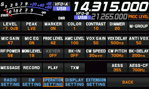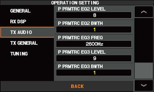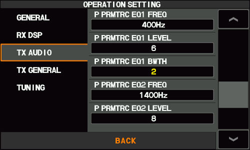 Then, under OPERATION SETTING - TX AUDIO, I’ve configured the following menu items: