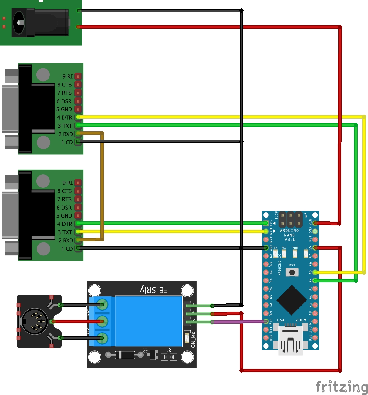 This gave me the idea to modify his solution so that I can not only automatically select the antenna, but also send the corresponding commands to change the band to the Hardrock 50. The setup looks like this: