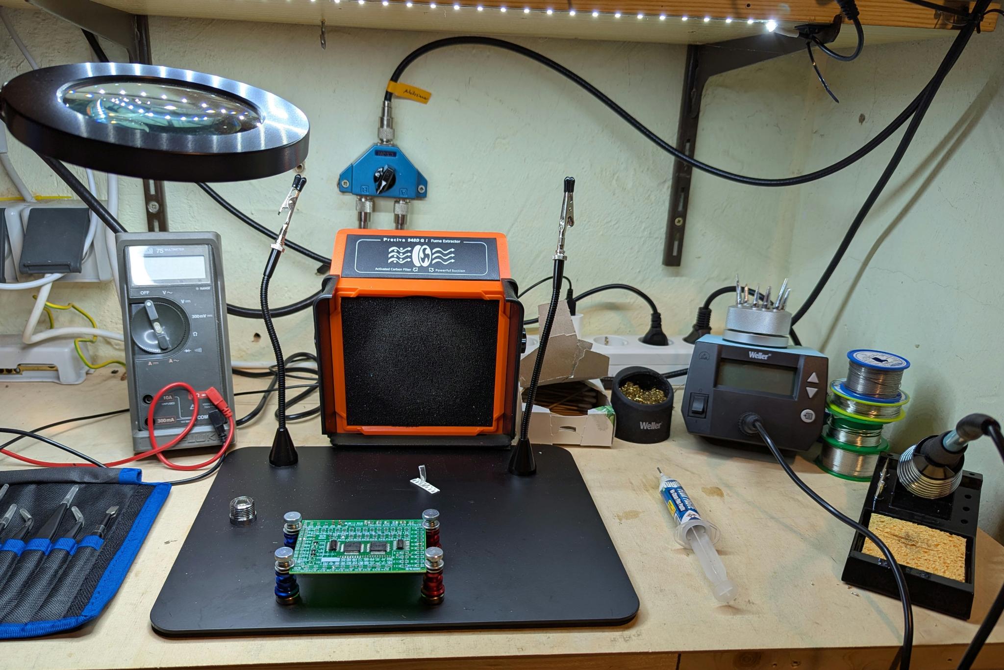These types of projects can be very expensive. For example, if you are afraid of soldering the smallest SMD components, you might consider buying a good magnifying glass with light or even a new soldering station. No matter how the project turns out, my electrical tinkering corner in the workshop has been significantly improved.