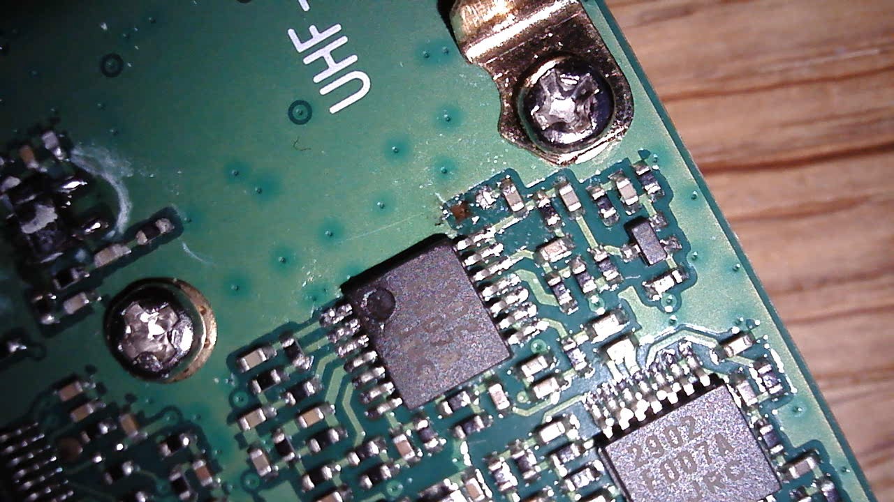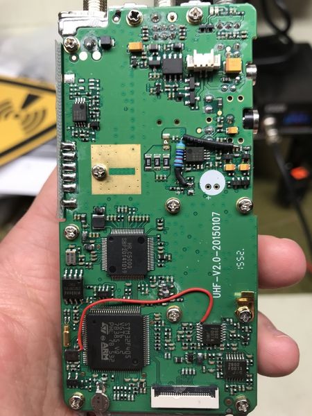 Difference 2: I messed up with the “RF -> MCU” mod (lower part in the picture) and damaged a solder pad: