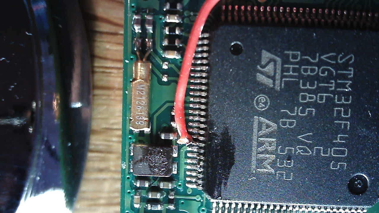 The alternative is to take some wire and connect pin 1 of U101 with pin 18 of the STM32. I needed a microscope for this to solder…