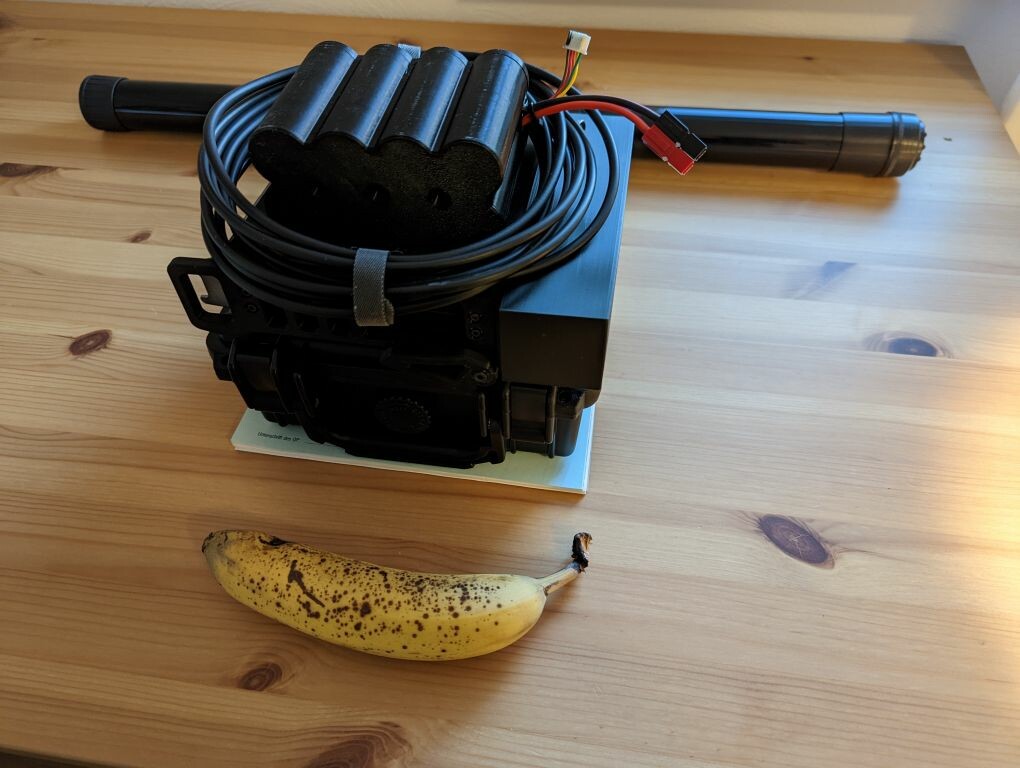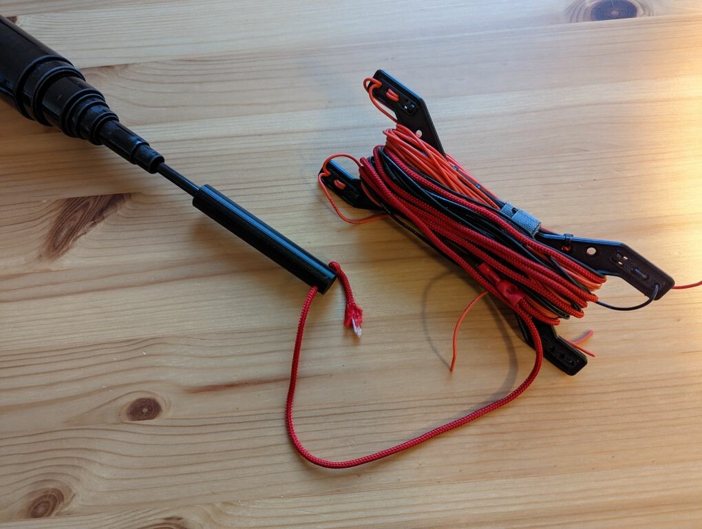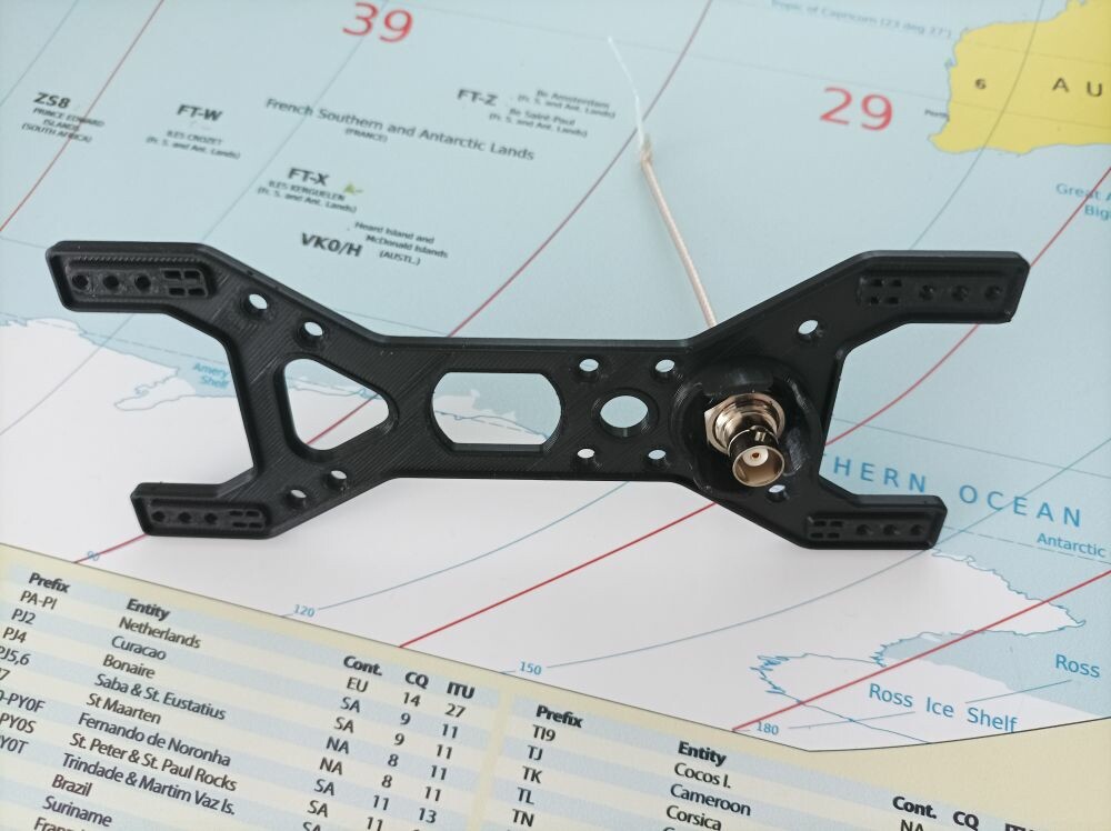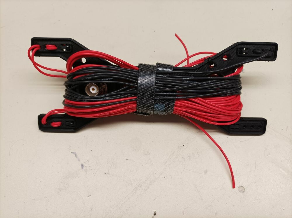 - self made 1/4 wave vertical antenna for 20m wrapped around a 3D printed winder and a 3D printed mast tip
