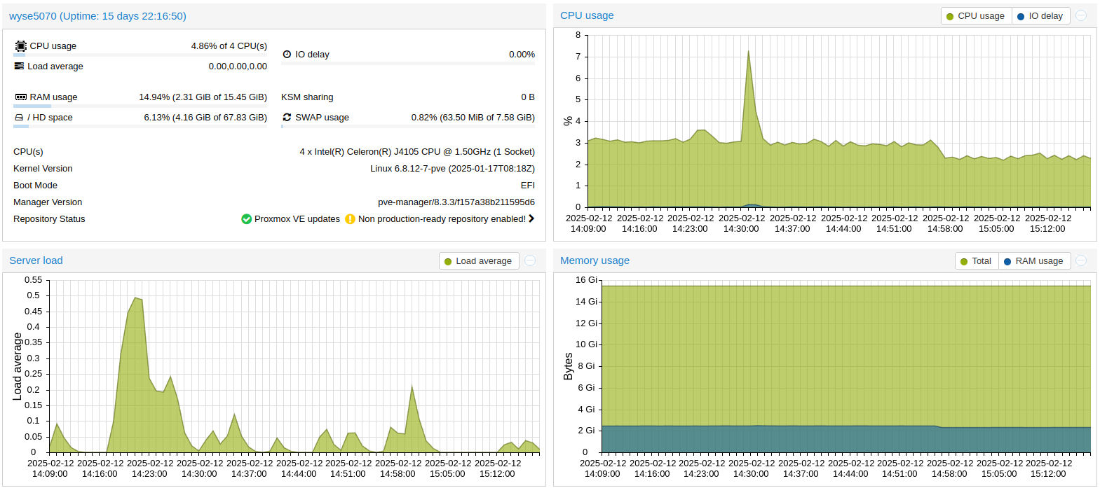 Posted on 2025-02-12After I decided to reduce hosting costs and generally bring my web applications from the cloud to my home, I needed an energy-saving server on which I could install Proxmox. After some research, I decided to buy a refurbished Dell Wyse 5070 thin client. I was able to purchase this from a commercial dealer for just under 50€ including power supply, stand and shipping. As I bought it, it had the following specs: