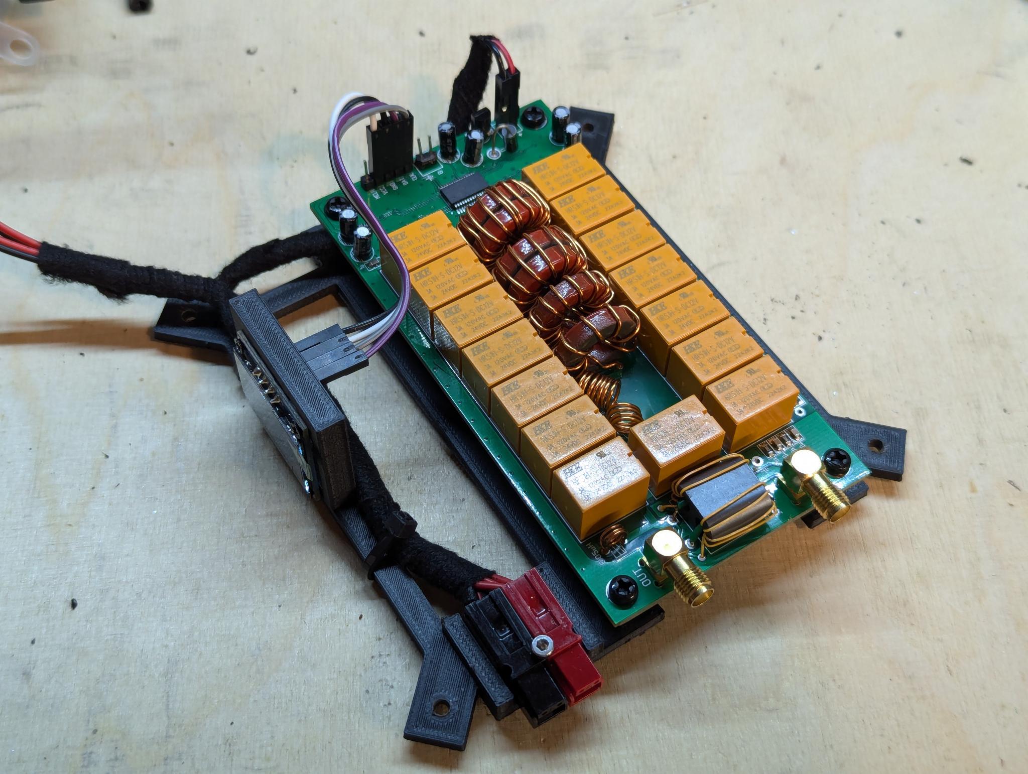 The tuner was then installed together with the display and a Powerpole connector on the specially designed and printed module carrier: