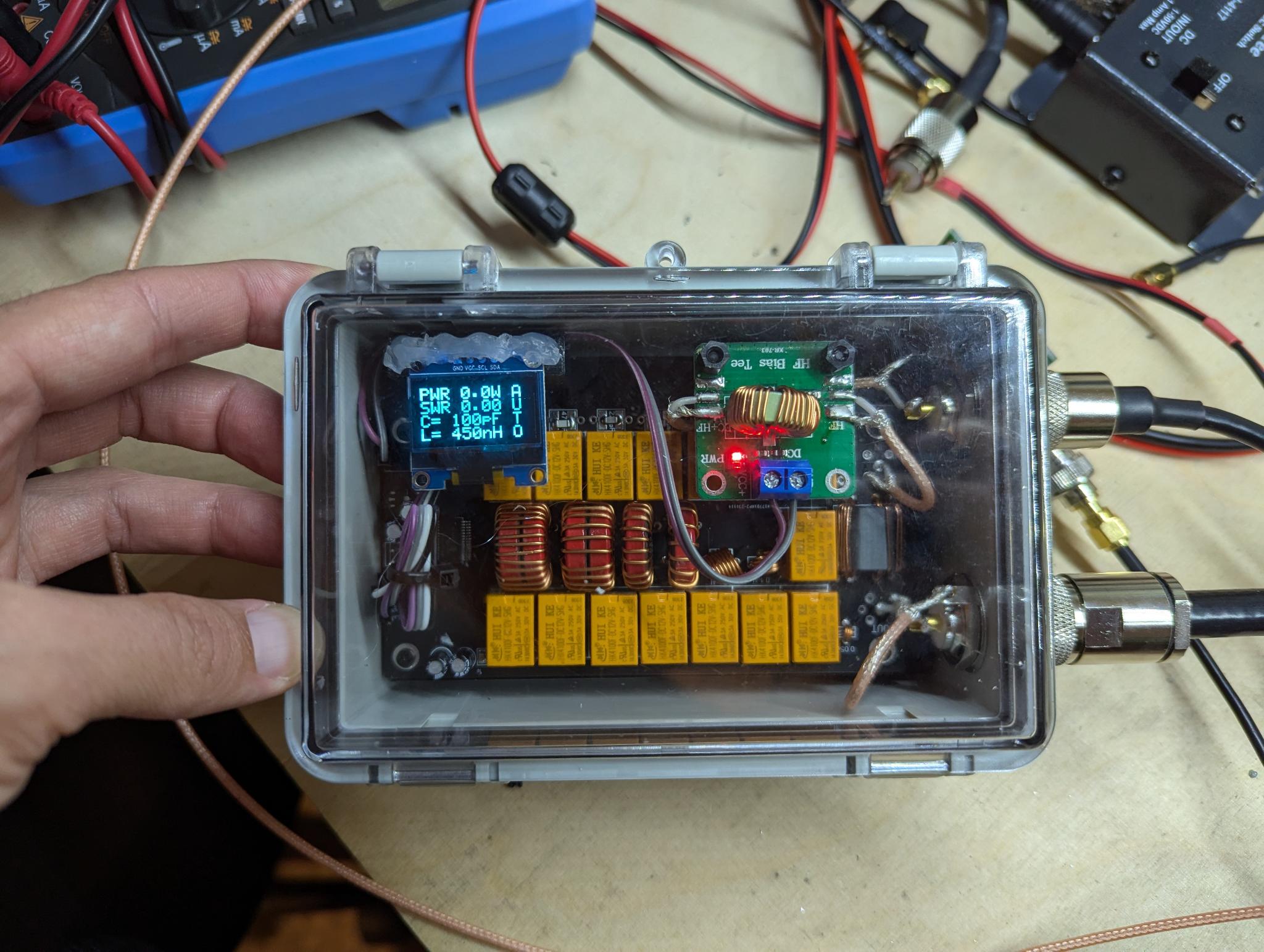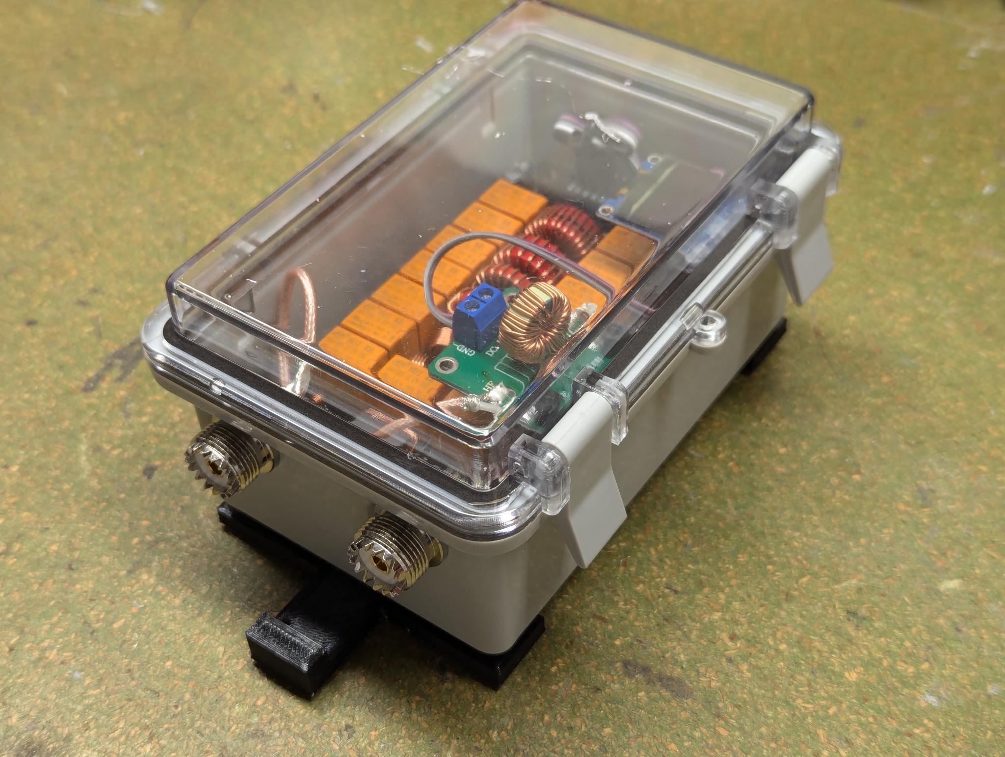 I’ve already built some ATU-100 automatic antenna tuners in the past: One was a build for QRO and one for QRP with only 5 windings on the binocular transformer and adaptions to the original firmware. While the QRO version worked fine, I had issues with the QRP variant. After I’ve discovered the very nice alternative firmware of DG4SN I’ve decided to build an ATU-100 based phantom powered remote antenna tuner that can be mounted on the mast directly beneath my M0PLK Delta Loop. The nice thing with DG4SN’s firmware is that it allows QRP operation with the original 10 windings on each side of the transformator.
