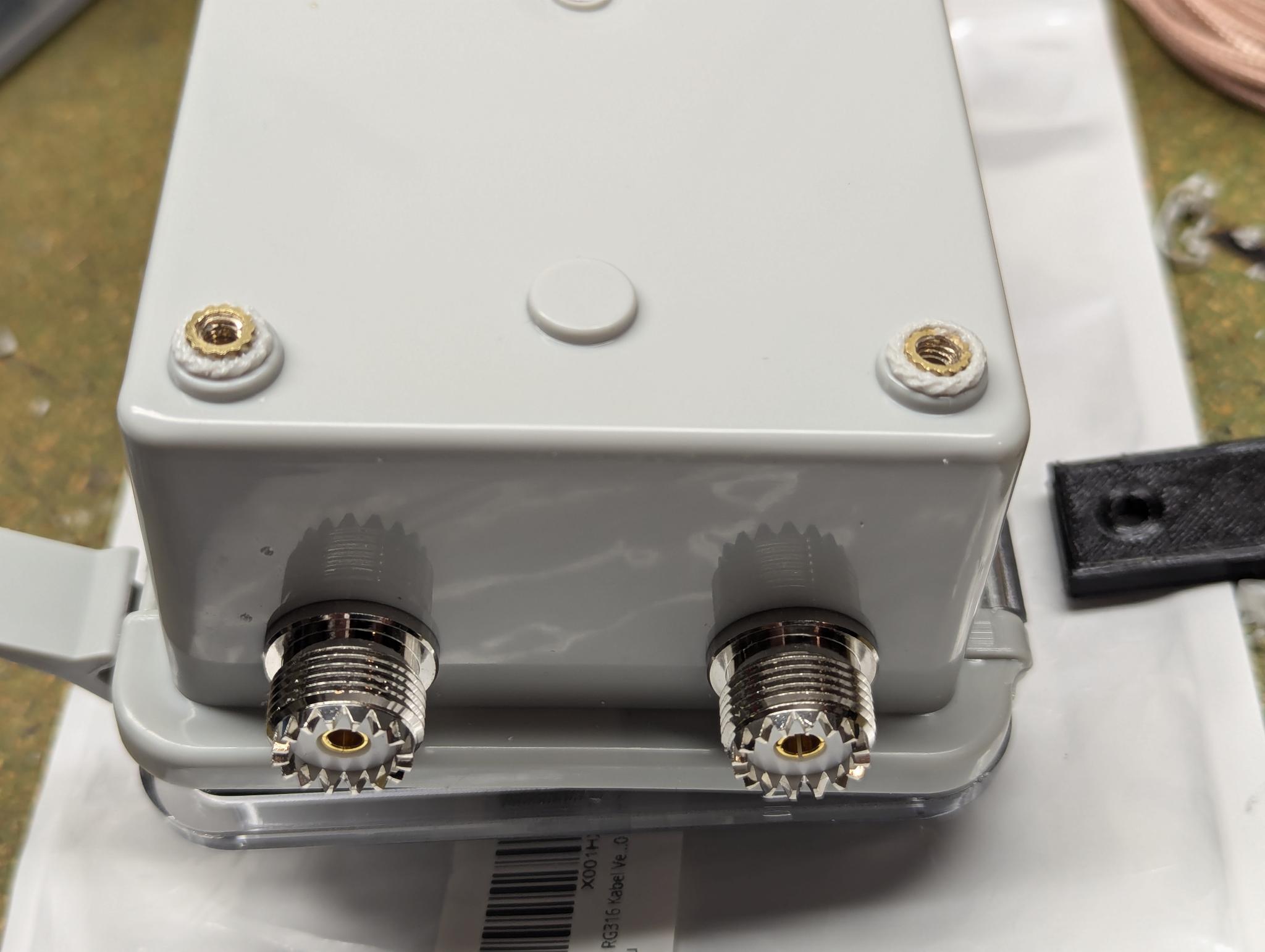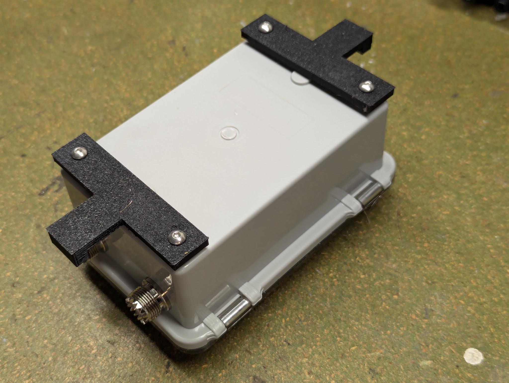 Two 3D printed t-shaped parts were then screwed to the enclosure. With them, the enclosure can be mounted to the mast with zip ties or big hose clamps: