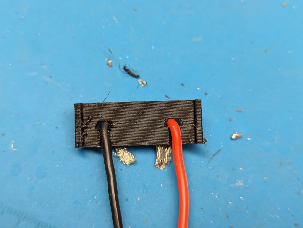 First I downloaded and printed the three STL files “Charger”, “Insert” and “Cover”. Then I took two relatively thick cables, stripped about 10mm of insulation and pushed them from behind into the printed part “Insert” through the two holes up to the insulation.