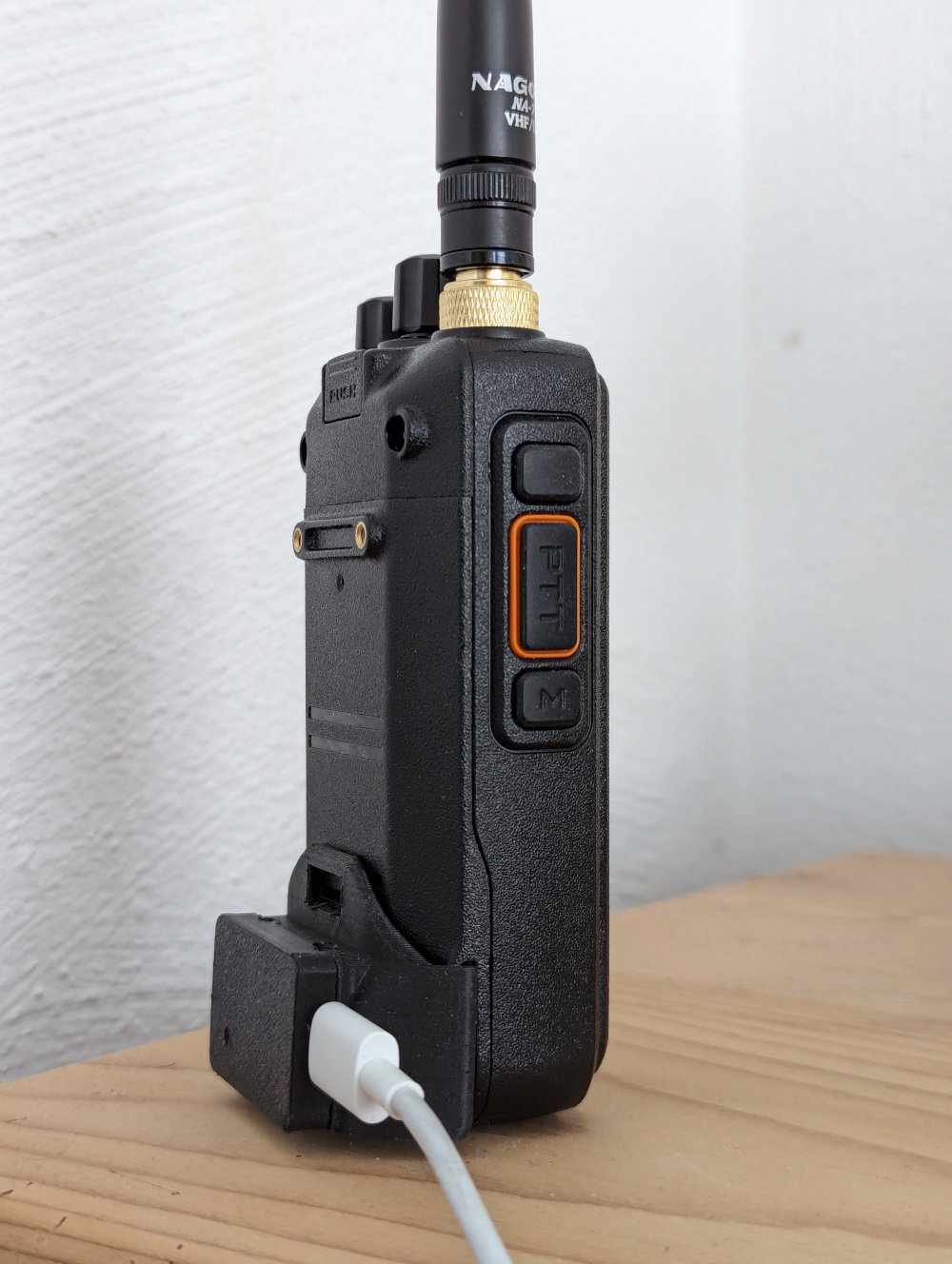Posted on 2024-04-06In order to reduce my travelling luggage, to be able to charge my Retevis RT3S even in the event of a power failure and basically to standardise the charging of devices, I have been looking around for a suitable solution. I came across the following design on Thingiverse: TYT MD380 , UV380 , Retevis RT3 RT3S USB charger. As the description is a bit sparse, I’ll try to document my build here.