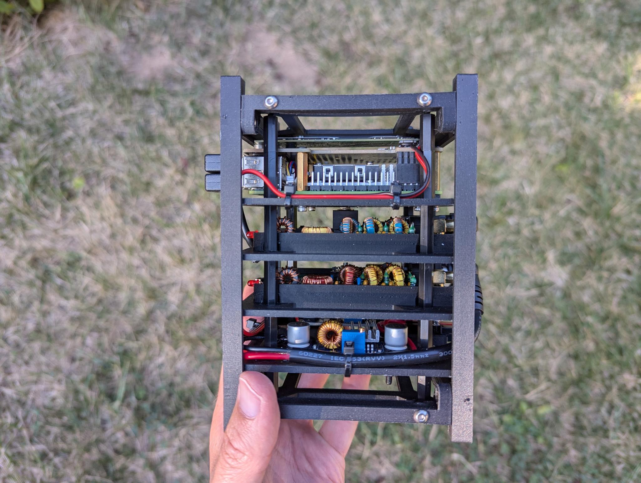 Posted on 2024-08-29After I’ve built the QubeDX for the higher bands (20 to 10m) and it’s little brother, the QubeDX S for the lower bands, I’ve realized that it would make more sense to combine both cubes into one. This time I wanted it as compact as possible so I went for the footprint of the QubeDX S but added 30mm in height.